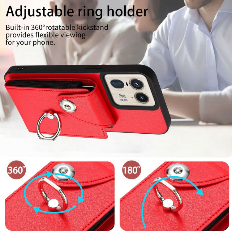 Funda para Teléfono Motorola Edge 50 Ultra Versión UE con Aro, Tarjetero y Cordón Largo (Rojo)