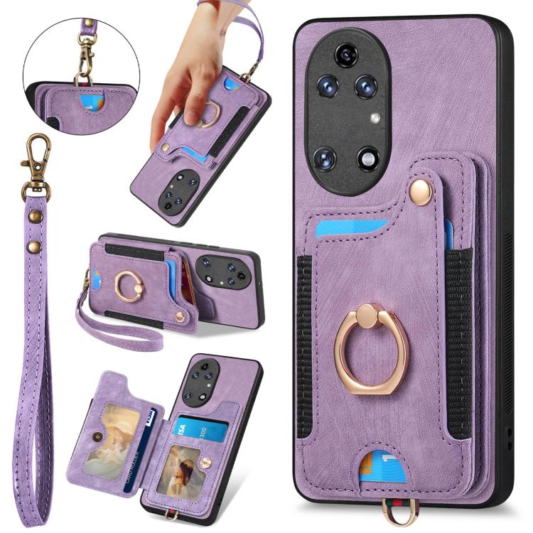 Funda para Teléfono Huawei P50 con Billetera MultiTarjeta y Anillo (Morado)
