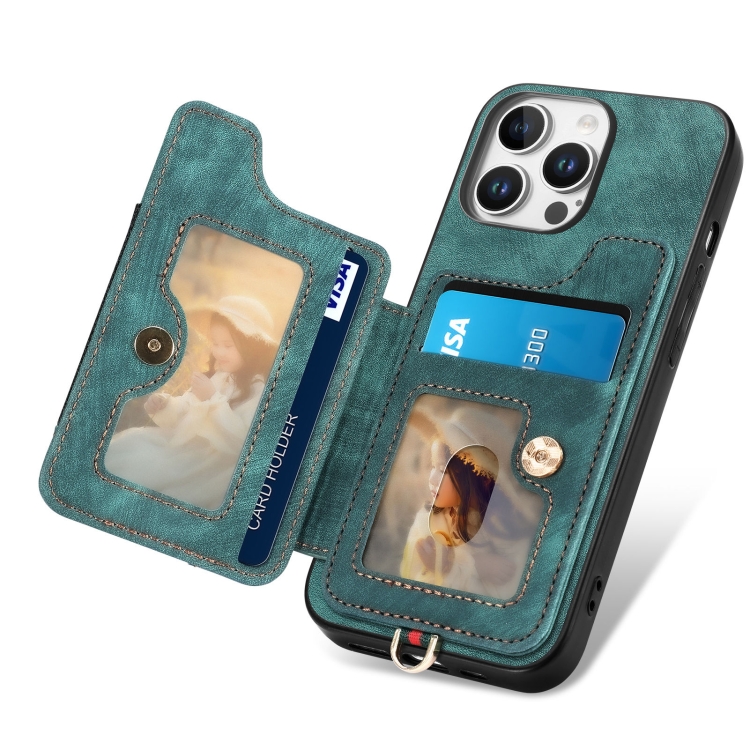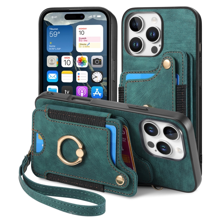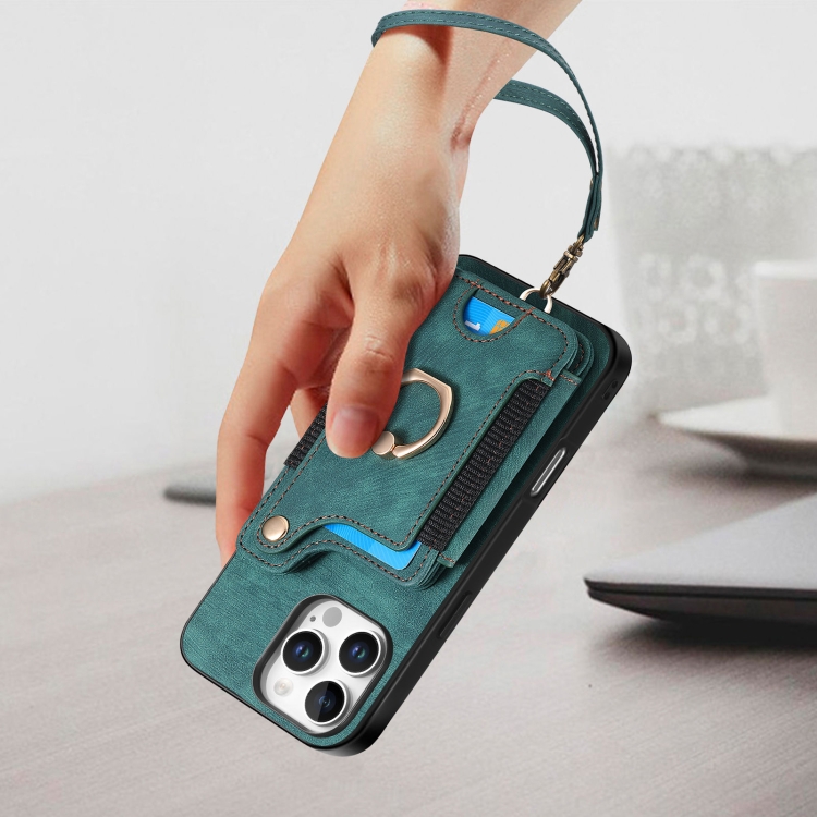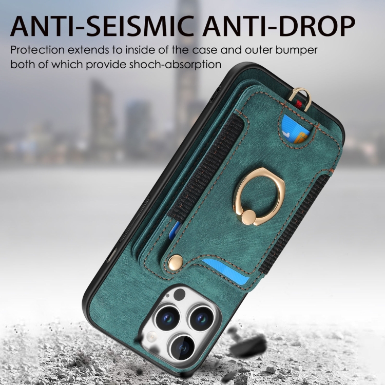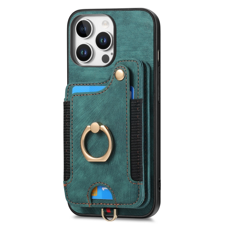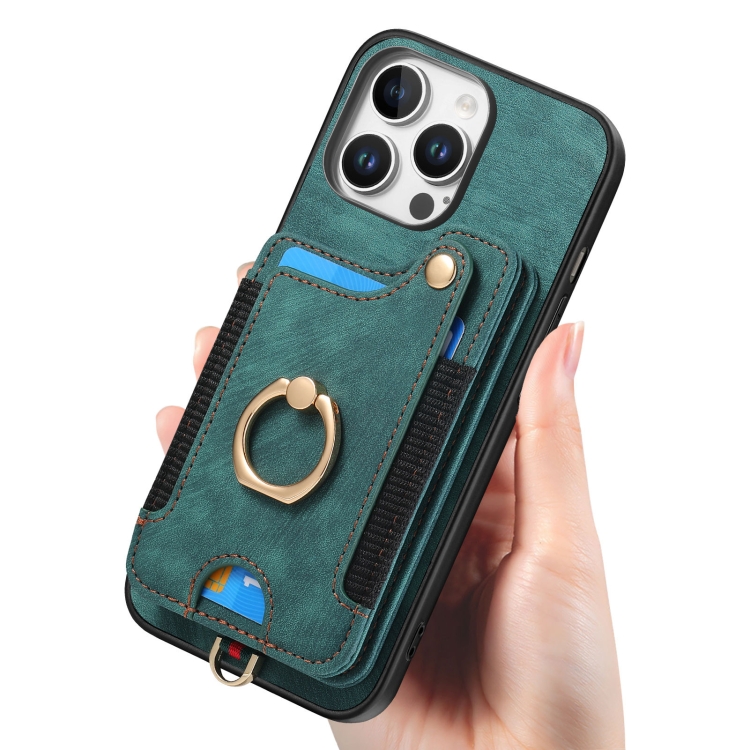 Funda para Teléfono iPhone 16 Pro Max Billetera MultiTarjeta Piel Sintética Anillo (Verde)