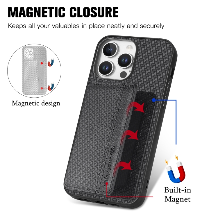 Funda para Teléfono con Bloqueo Rfid y Billetera Fibra de Carbono iPhone 16 Pro Max (Negra)