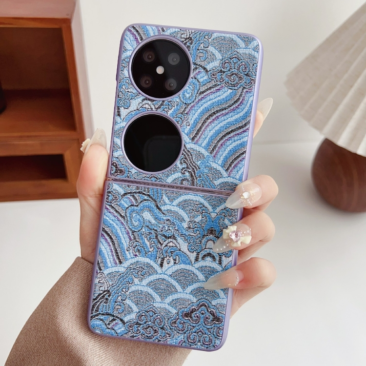 Funda para Teléfono Huawei Pocket 2 con Bordado de Nubes Propicias (Azul)