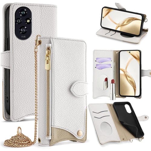 Funda para Teléfono Honor 200 con Cadena Cruzada y Cola de Pez de Cuero de Lichi (Blanca)