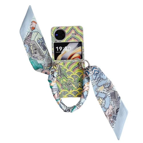 Funda para Teléfono con Cobertura Total con Bordado de Nubes Propicias para Vivo X Flip con Bufanda/Pulsera (Verde)