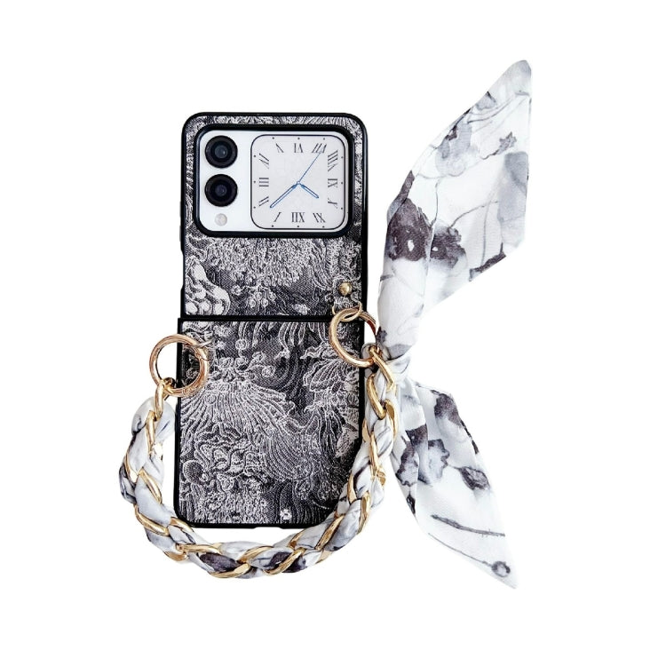 Funda para Teléfono Huawei Nova Flip con Cobertura Total y Estilo Bordado (Negra) con Bufanda o Pulsera