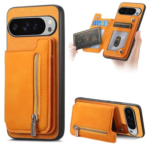 Funda para Teléfono Google Pixel 9 Pro XL Magsafe Retro Tipo Billetera con Tarjetero (Amarilla)
