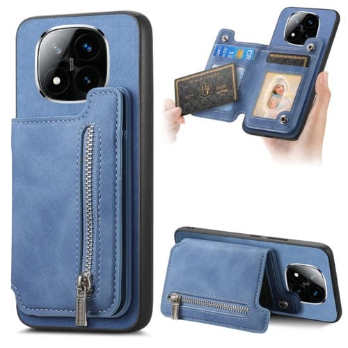 Funda para Teléfono con Cremallera Magsafe Retro para Redmi Note 14 Pro+ 5G (Azul)