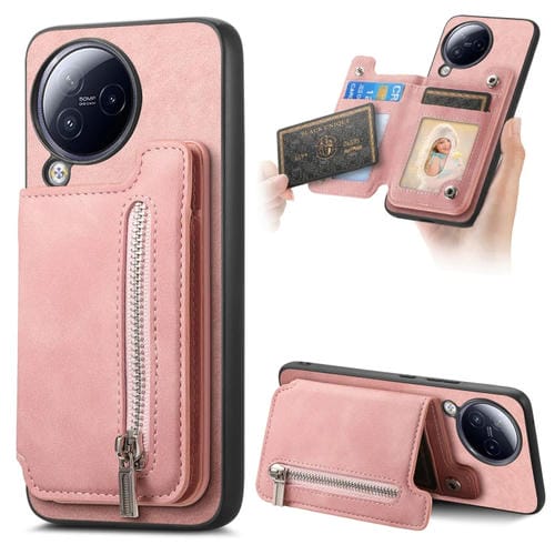 Funda para Teléfono con Cremallera Magsafe Retro para Xiaomi Civi 3 5G (Rosa)