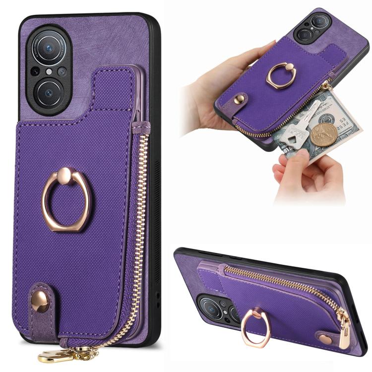 Funda para Teléfono Huawei Nova 9 Se con Cremallera Vertical y Anillo de Cuero Cruzado (Morado)