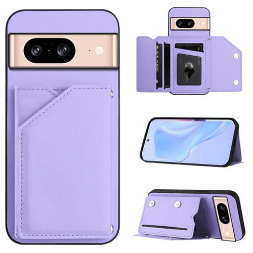 Funda para Google Pixel 8 Skin Feel con 4 Ranuras para Tarjetas y Correa para Muñeca (Morado)