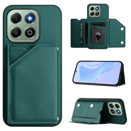 Funda para Teléfono Honor X6B Skin Feel con 4 Ranuras para Tarjetas y Correa (Verde)