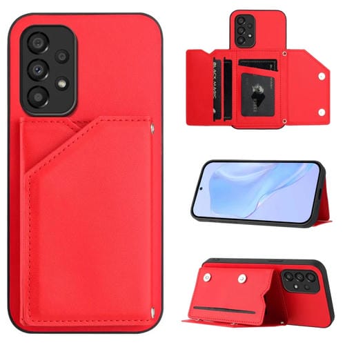 Funda para Teléfono Samsung Galaxy A33 5G Skin Feel con 4 Ranuras y Correa (Rojo)
