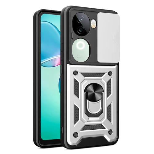 Funda para Teléfono con Diseño de Cubierta Deslizante para Cámara Global de Vivo Iqoo Z9S 5G, TPU + PC (Plateada)