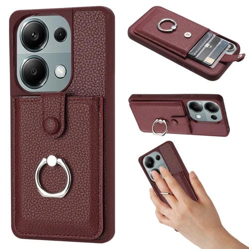 Funda para Teléfono con Diseño de Textura de Lichi para Redmi Note 13 Pro 4G, con Soporte para Anillo y Diseño de Tarjeta (Rojo Vino)