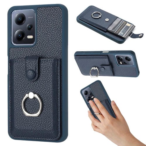 Funda para Teléfono con Diseño de Textura de Lichi y TaRJetero con Anillo para Redmi Note 12 5G (Azul)