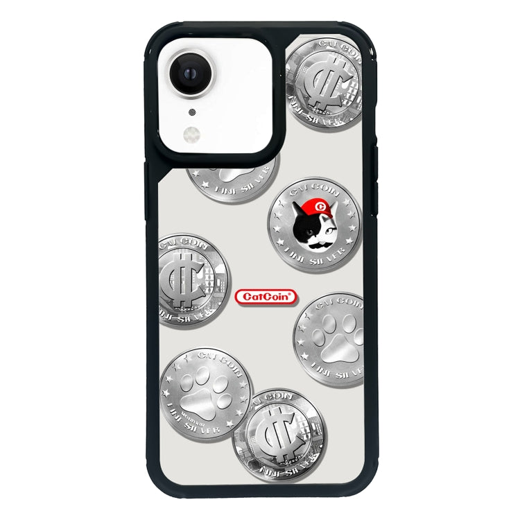 Funda para Teléfono iPhone Xr PC Patrón Cobertura Total (Gato con Moneda Plateada)