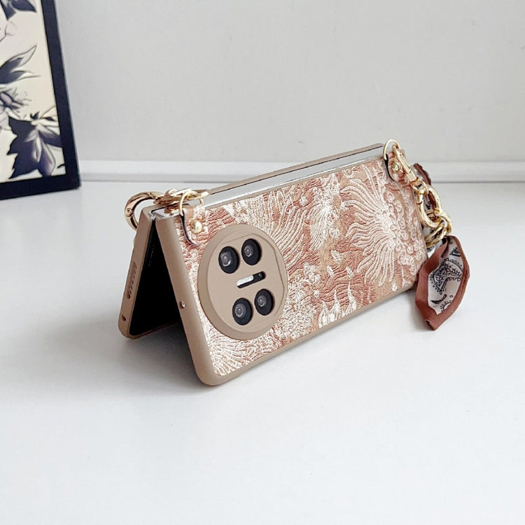 Funda para Teléfono Huawei Mate X3/X5 Bordado Diy Cobertura Total con Bufanda y Pulsera (Naranja)
