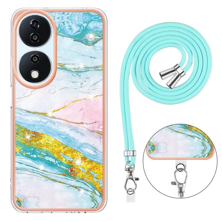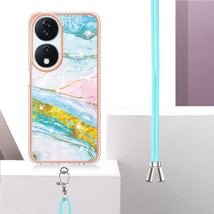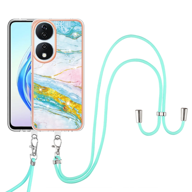 Funda para Teléfono Honor X7B 4G/5G con Imd Doble Cara y Galvanoplastia Mármol (Verde) con Cordón