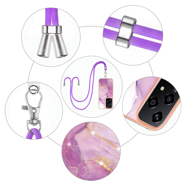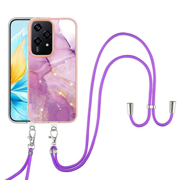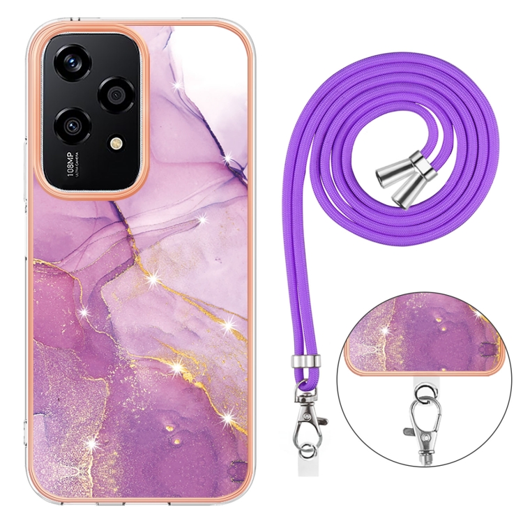 Funda para Teléfono Honor 200 Lite con IMD Doble Cara, Galvanoplastia Global y Cordón (Morado)