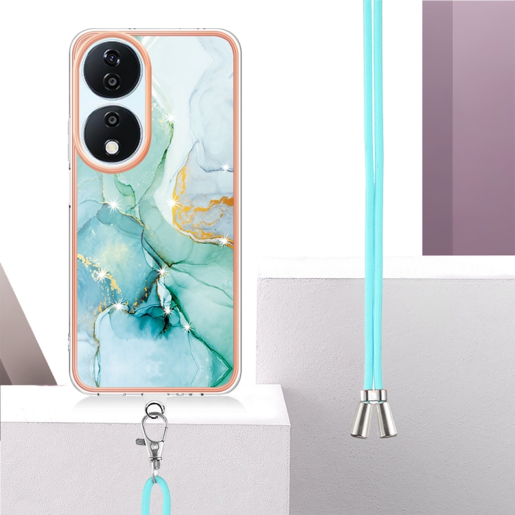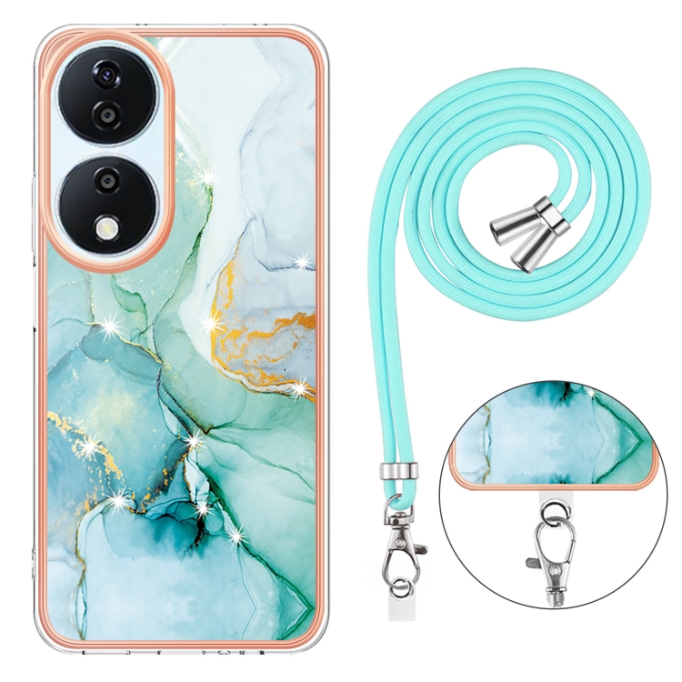 Funda para Teléfono Honor X7B 4G/5G con IMD Doble Cara Mármol Galvanizado y Cordón (Verde)