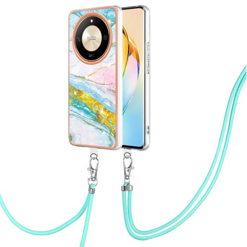 Funda para Teléfono Honor X9B con Imd Doble Cara y Revestimiento Mármol Galvanizado con Cordón (Verde)