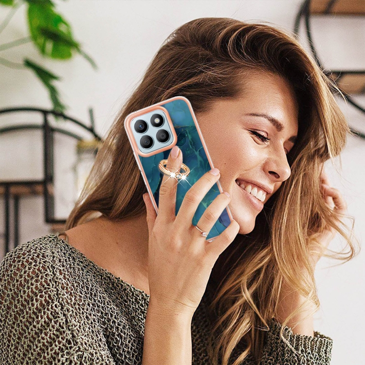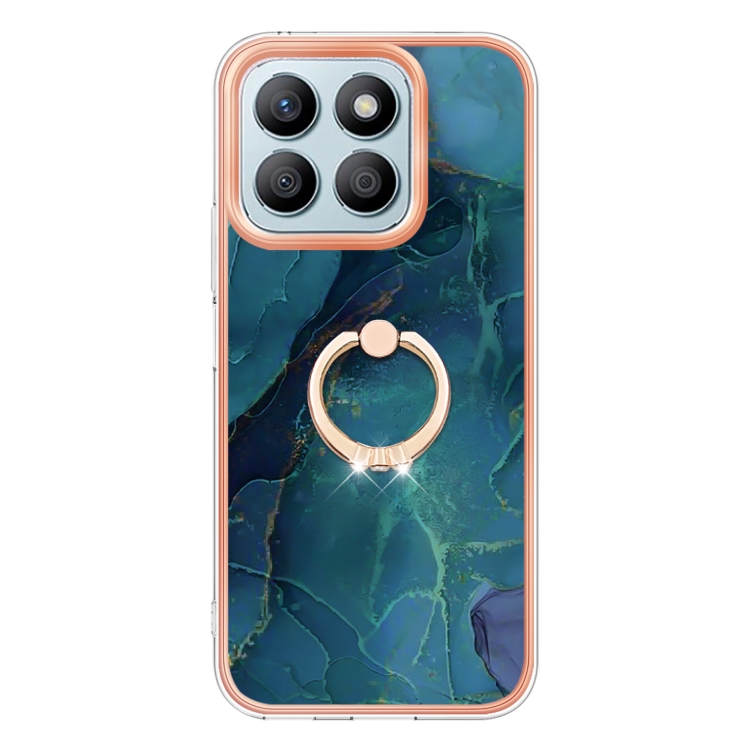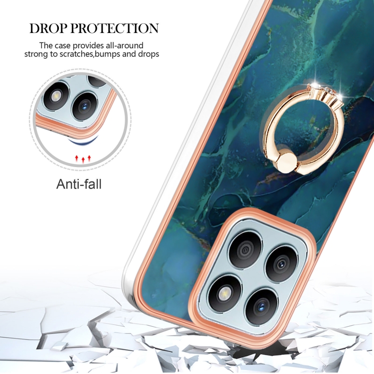 Funda para Teléfono Honor X8B con Revestimiento Mármol Galvanizado Doble Cara Imd y Anillo (Verde)