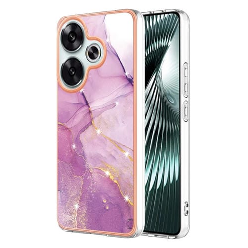 Funda para Teléfono con Revestimiento de Mármol Galvanizado de Doble Cara Imd para Xiaomi Poco F6 5G (Morado 001)