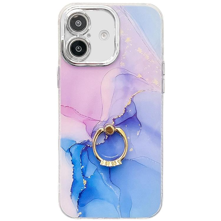 Funda para Teléfono iPhone 16 con Soporte de Anillo Textura Mármol Galvanizado (Púrpura, Azul)