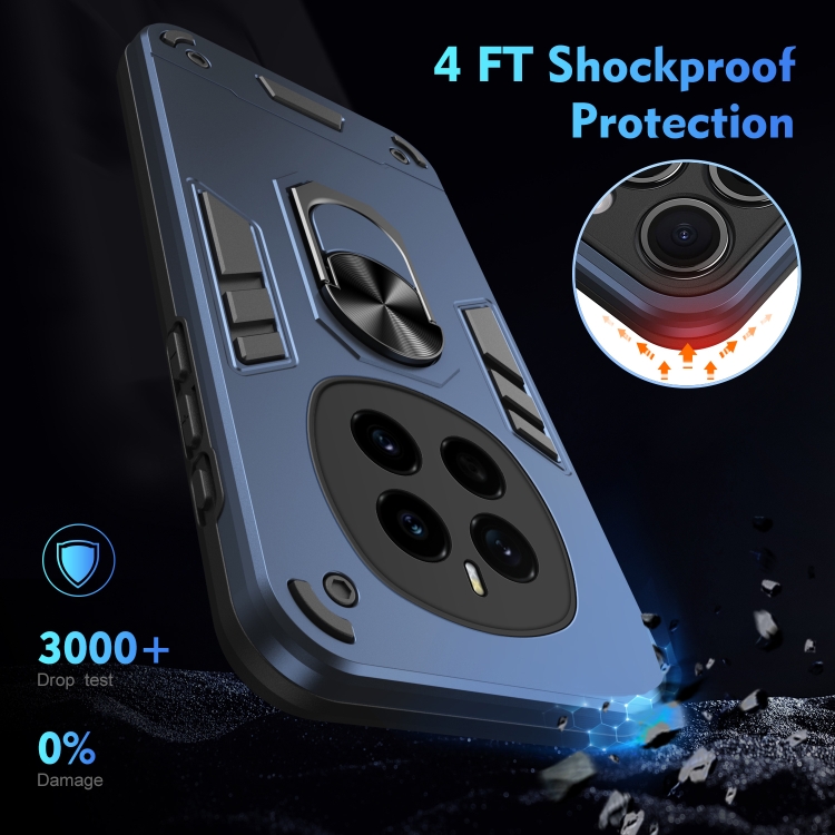 Funda para Teléfono Honor Magic7 con Soporte de Anillo de Metal a Prueba de Golpes (Azul)