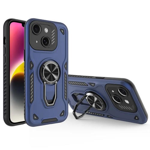 Funda para Teléfono iPhone 14 Soporte Giratorio Metal TPU PC (Azul Oscuro)
