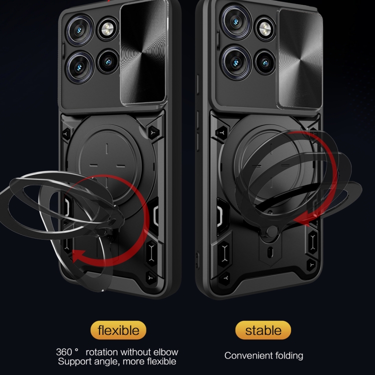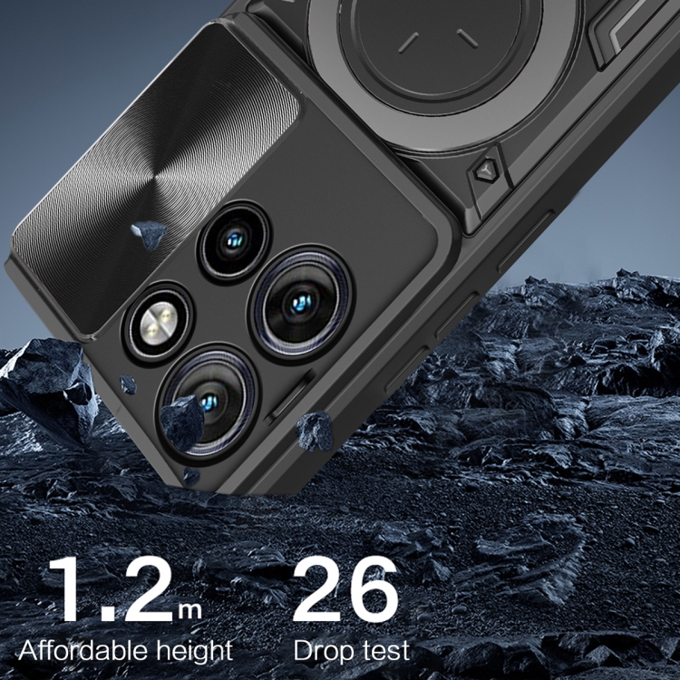 Funda para Teléfono Motorola Edge 50 Neo con Soporte Magnético Deslizante y Textura de Cd (Negro)