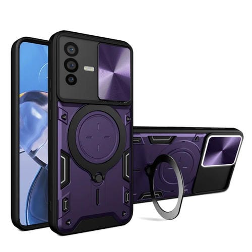 Funda para Teléfono con Soporte Magnético Deslizante con Textura de Cd para Vivo V23 5G/S12 5G (Morado)