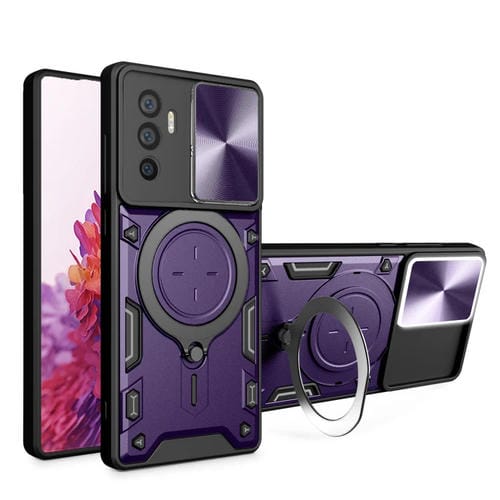 Funda para Teléfono con Soporte Magnético Deslizante con Textura de Cd para Vivo V23E 4G/5G Global (Morado)