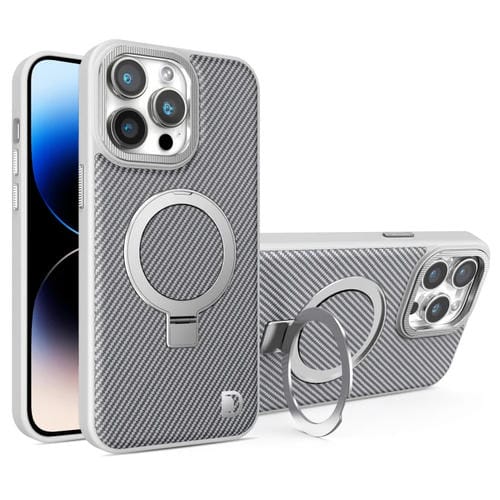 Funda para Teléfono Fibra de Carbono con Soporte Magsafe para iPhone 14 Pro (Gris)