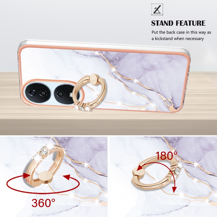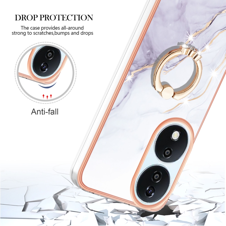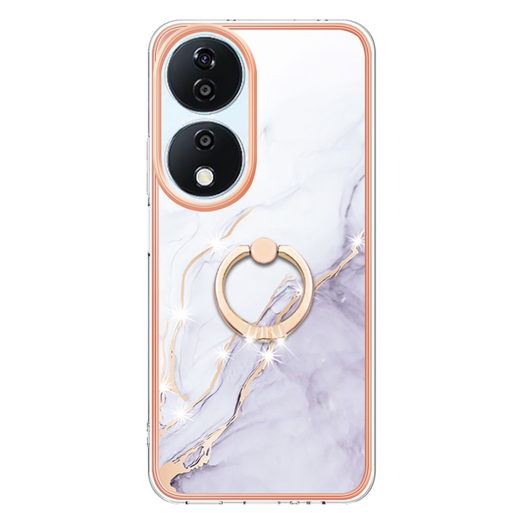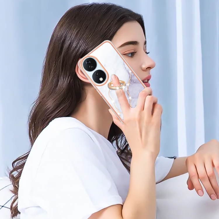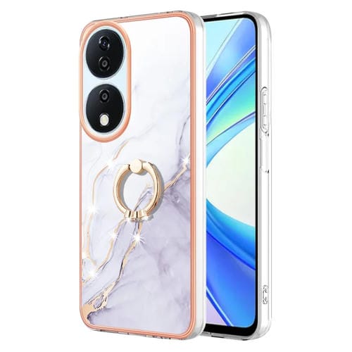 Funda para Teléfono Honor X7B 4G/5G con Soporte Anillo Revestimiento Mármol Imd TPU (Blanco)