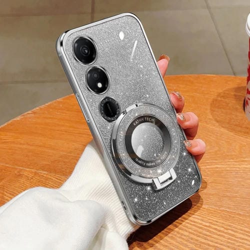 Funda para Teléfono Honor Play 40 TPU con Soporte Redondo y Purpurina Degradada (Plateada)