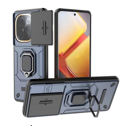 Funda Protectora de TPU + PC con Soporte para Vivo Iqoo Z9S Pro 5G, con Diseño Deslizante y Antigolpes (Azul)