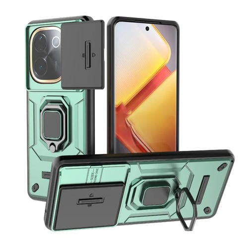 Funda Protectora de TPU + PC con Soporte para Vivo Iqoo Z9S Pro 5G, con Diseño Deslizante y Antigolpes (Verde)