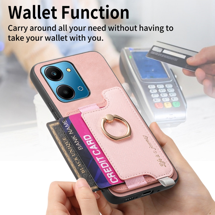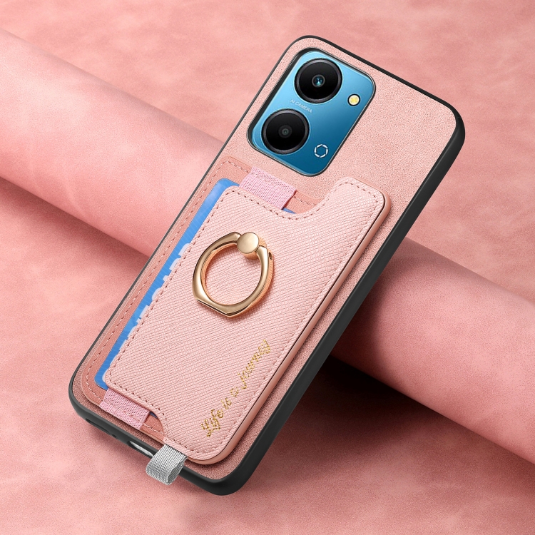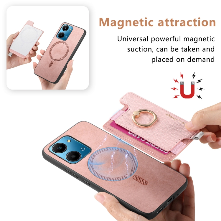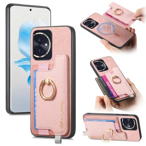Funda para Teléfono Honor 100 con Tarjetero y Anillo de Cuero Magsafe Cross (Rosa)