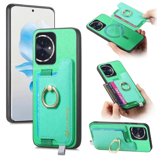 Funda para Teléfono Honor 100 con Tarjetero y Anillo de Cuero Retro Magsafe (Verde)