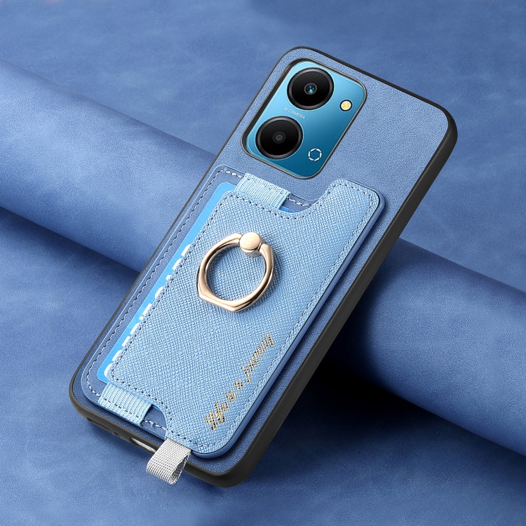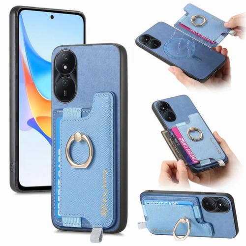 Funda para Teléfono Honor Play 50 Plus 5G con Tarjetero y Anillo de Cuero Retro Magsafe (Azul)