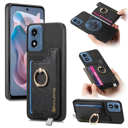 Funda para Teléfono Motorola Moto G Play 2024 4G con Tarjetero y Anillo de Cuero (Negro)