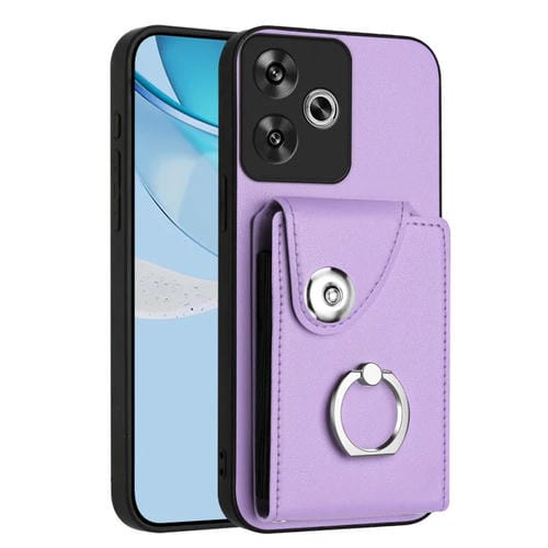 Funda para Teléfono con TaRJetero y Anillo para Xiaomi Poco F6 5G (Morado)