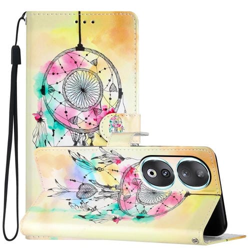 Funda para Teléfono Honor 90 de Cuero con Dibujo Coloreado Atrapasueños