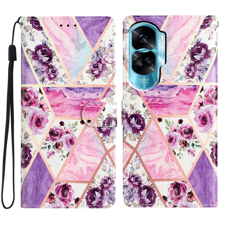 Funda para Teléfono Honor 90 Lite Cuero Dibujo Coloreado (Mármol Morado)