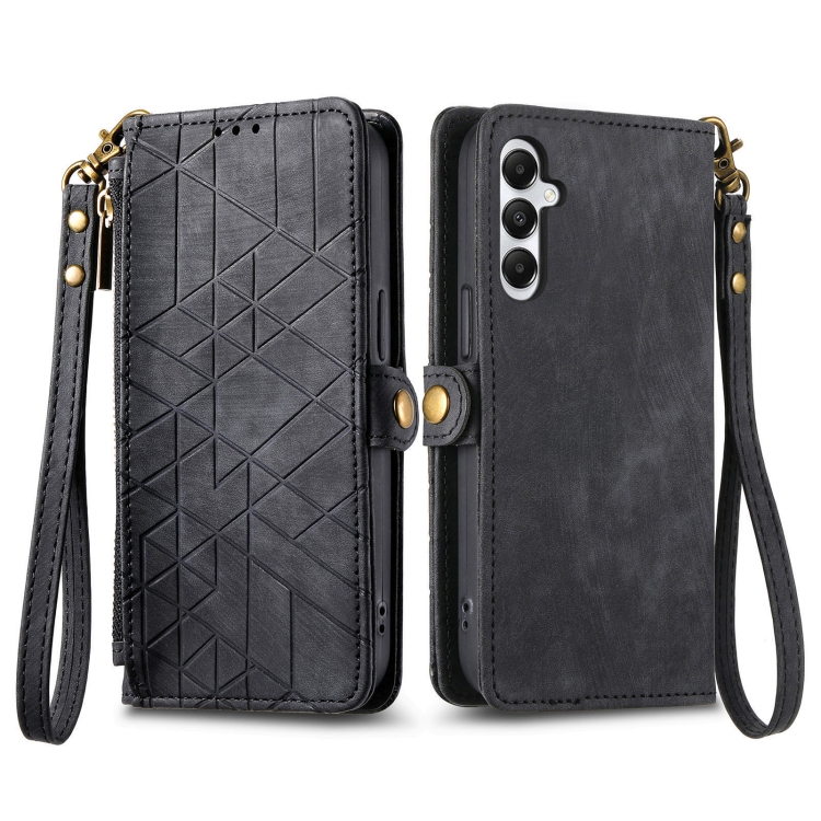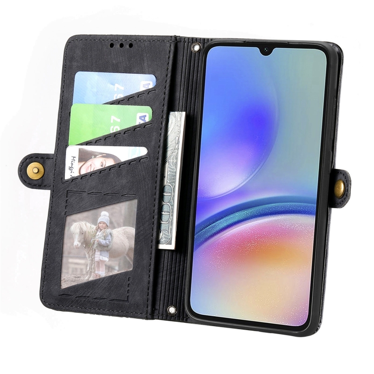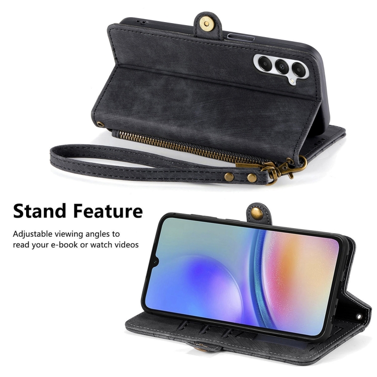 Funda para Teléfono Cuero Samsung Galaxy A05S Billetera Cremallera Hebilla (Negro)