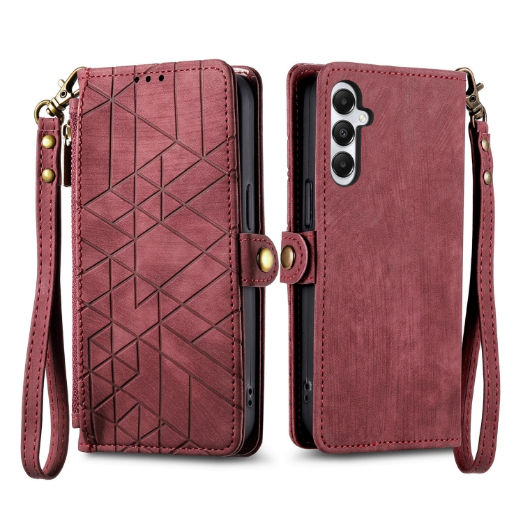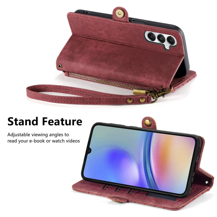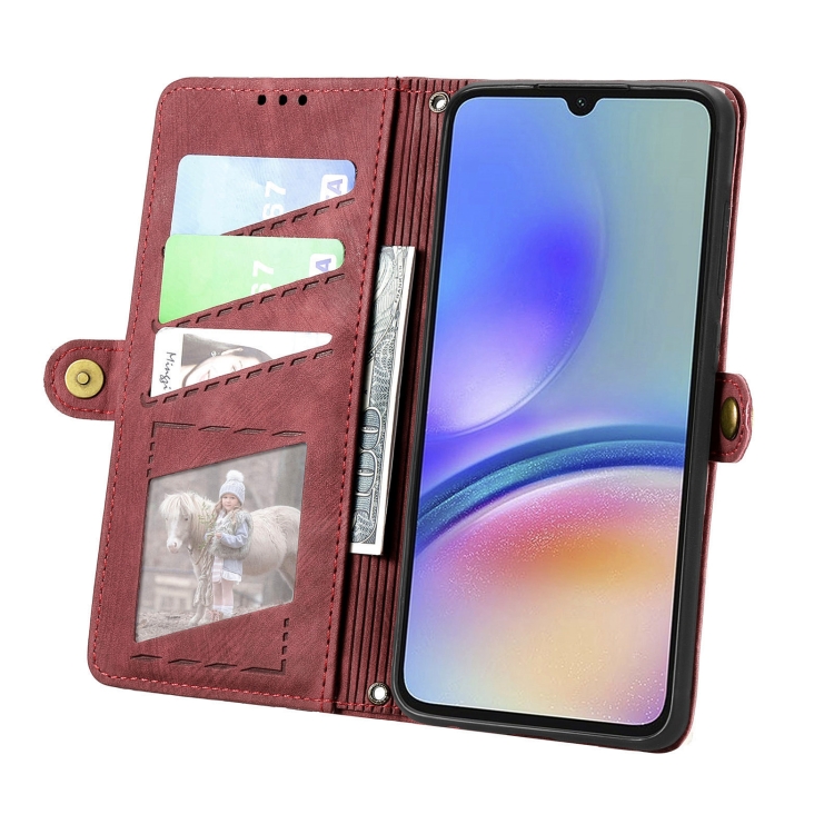 Funda para Teléfono Cuero Samsung Galaxy A05S Billetera Cremallera Hebilla (Rojo)
