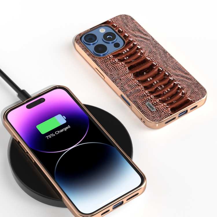Funda para Teléfono Weilai Abeel Cuero Genuino Marco Galvanizado iPhone 16 Pro Max (Café)