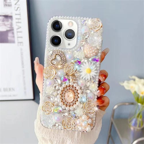 Funda para Teléfono PC con Incrustaciones de Diamantes para iPhone 11 Pro (Blanca)