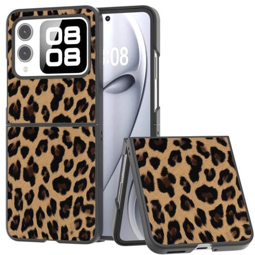 Funda para Teléfono Huawei Nova Flip con Marco Negro y Estampado Leopardo Dorado