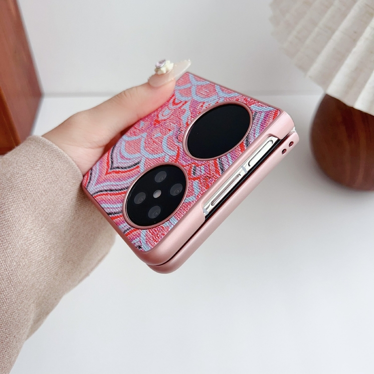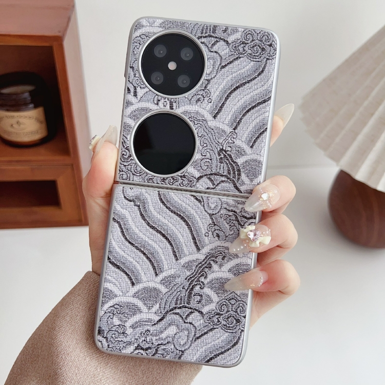 Funda para Teléfono Huawei P50 Pocket con Bordado de Nubes Propicias y Cobertura Total (Gris)